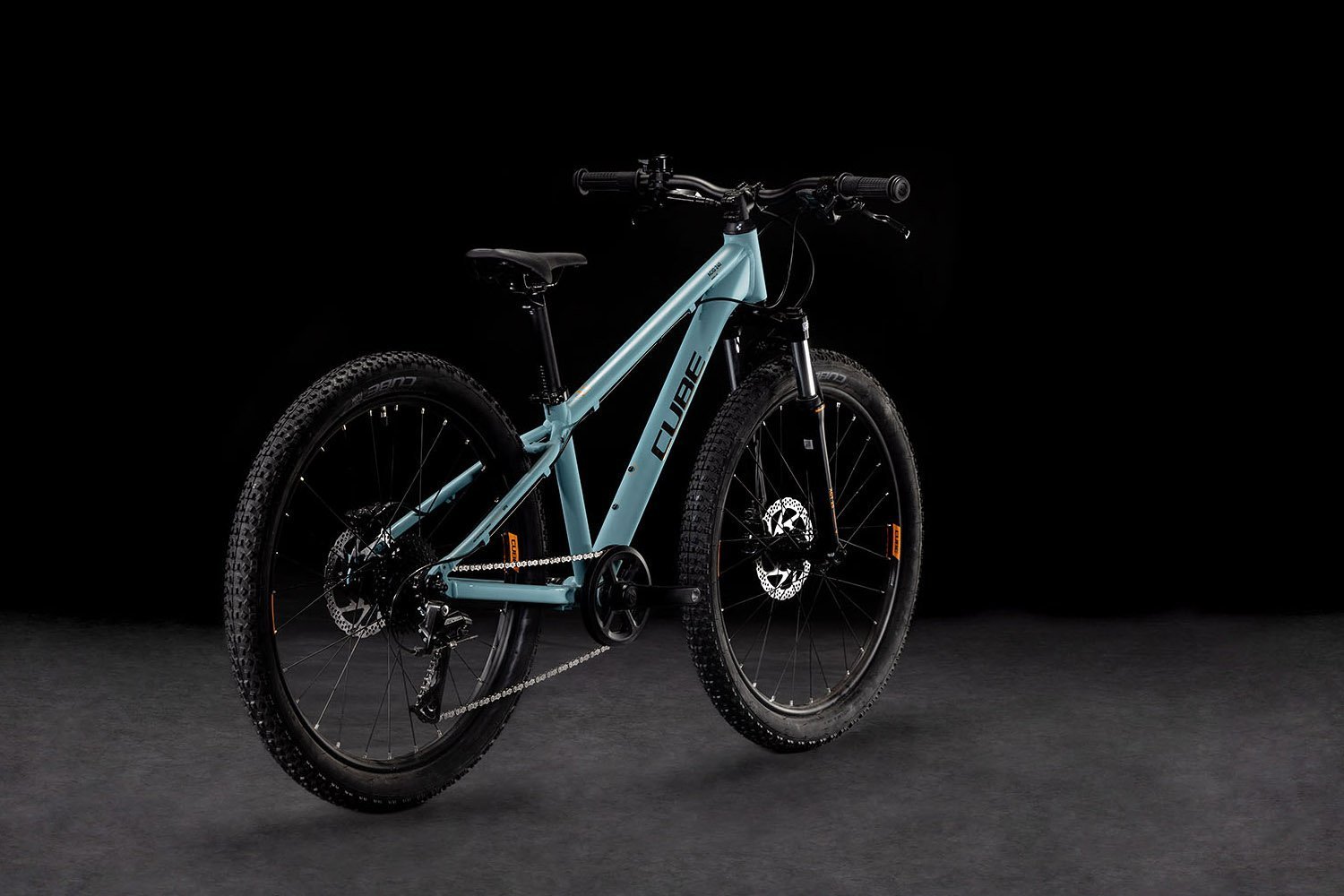 Der Rahmen des ACID 240 besteht aus denselben hitzebehandelten 6061er-Aluminiumrohrsätzen wie der unserer Erwachsenen-Mountainbikes und ist demnach genauso robust und stabil. Allerdings hat Cube seine Proportionen und das Gewicht auf die Anforderungen von Kindern abgestimmt. Zudem können Schutzbleche verschraubt werden – und ein Flaschenhalter, damit die Youngsters unterwegs immer top versorgt sind. Sein Handling verspricht hohen Fahrspaß und zugleich Zuverlässigkeit – so kann der Nachwuchs jede Menge Selbstvertrauen tanken. Weil sich der eine oder andere Sturz kaum vermeiden lässt, hat Cube zudem ein einfach austauschbares Schaltauge verbaut. Dadurch gehören aufwendige Reparaturen nach einem Aufprall der Vergangenheit an.