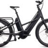 Bei der Entwicklung des potenten Packesels namens Longtail Hybrid wurde logischerweise viel Wert auf einen hohen praktischen Nutzen gelegt. Für Power und hohe Reichweite beim Lastentransport sorgen dabei der CX Line Motor der vierten Generation von Bosch. Bis zu 200 kg Systemgewicht reisen so bequem von A nach B – dabei finden 60 kg auf dem stabilen erweiterbaren Gepäckträger am Heck Platz, wo sich zwei gängige Seitentaschen anbringen lassen. Außerdem kann durch eine optionale Erweiterung mit Haltestangen eine Eurobox montiert werden. Noch mehr Lastenkapazität wird durch einen Unterrohr-Gepäckträger und dem Nachrüsten mit einem Front-Gepäckträger erreicht. Dazu befindet sich im Unterrohr ein kleines, absperrbares Staufach. Lastentransporte durch die Stadt? Umweltfreundlicher, stressfreier und effizienter als mit diesem Bike geht’s nicht!