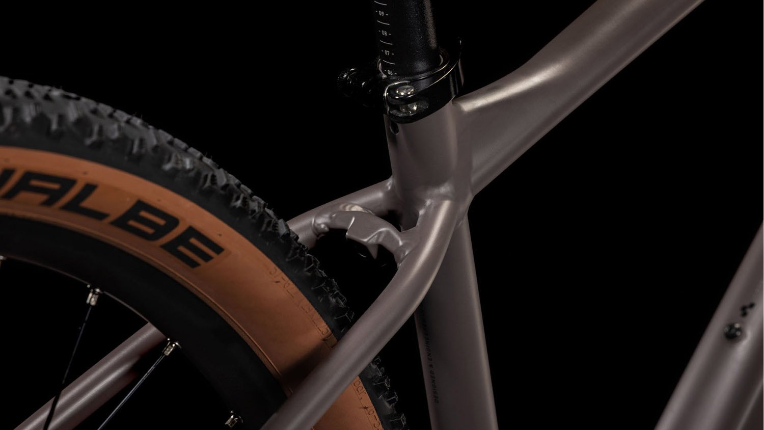 Der Reaction Rahmen besticht mit seinem supercleanen Look – verantwortlich dafür: Die im Smooth Welding Verfahren gestalteten Verbindungen an Steuer- und Sattelrohr. Außerdem hat Cube ihm ein geschraubtes Tretlager gegeben und die Züge ins Innere verlegt, damit sie ihren Job lange machen und leicht gewartet werden können. Es gibt sogar eine Aufnahme für Flat Mount Scheibenbremsen, die nahtlos in den Seitenständeraufnahme integriert ist. Montagepunkte für ACID Schutzbleche und Gepäckträger sind auch mit dabei. Seine durch und durch Trail-taugliche Geometrie mit einem niedrigeren Oberrohr und konifizierten Steuerrohr für superzuverlässiges Handling lässt viel Platz für breite, griffige, komfortable 2.25 Zoll Reifen. Da mit wachsendem Fahrkönnen auch die Ansprüche steigen, kann das Chassis zudem mit einer versenkbaren Sattelstütze ausgestattet werden.