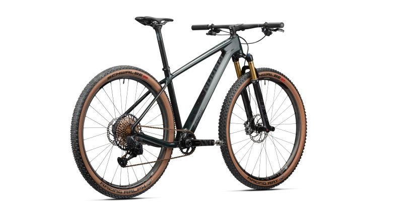 Anfang von allem ist der superbe JEALOUS Carbonrahmen, der mit seinen 950 Gramm Gewicht bei allen technischen Features, die er mitbringt, nur minimal die Waage belastet und in der dunkelgrünen Effektlackierung auch extrem sexy wirkt. An der Front spendet die FOX 32 Float Factory Stepcast Gabel mit ihren 100 mm Federweg viel Komfort und lässt sich perfekt an die Fahrervorlieben anpassen, um immer den nötigen Grip zu generieren. Zudem liefert die golden schimmernde Kashima-Beschichtung neben feinstem Ansprechverhalten auch den nötigen Bling-Bling-Faktor. Das superleichte, handschmeichelnde Cockpit stammt wie die komfortspendende Carbonsattelstütze von Newmen. Um Dich für alle Fälle zu rüsten, spendieren wir dem JEALOUS 10.0 EA eine superschnelle und präzise elektronische Schaltung von SRAM, die XX1 Eagle AXS. Hier kommt alles Gute zusammen: sorglose wie knackige Schaltvorgänge, geringes Gewicht, üppige Übersetzungsbandbreite mit der 10-52 Zähne umfassenden Kassette und die Optik überzeugt auch. Die kupferfarbene Kassette und Kette passen hervorragend zum Kashima-Ton und dem Liquidgreen-Lack des Rahmens. Gebremst wird mit Maguras XC-Flaggschiff MT8SL, das Bremspower und minimales Gewicht perfekt vereint. Komplettiert wird das Race-ready-Paket mit dem Newmen SL X.A.30 Laufradsatz mit leichten wie auch soliden Carbonfelgen, die mit ihren 30 mm Maulweite die Reifen problemlos aufnehmen und in Form bringen. Hier montieren wir das Schnellste, was sich bei Schwalbe finden lässt: die Kombination aus Racing Ray vorne und Racing Ralph hinten in der Addix Speedgrip Gummimischung und mit Super Race Karkasse, zudem mit der stylishen transparent skin Seitenwand. JEALOUS 10.0 EA ist Racing!