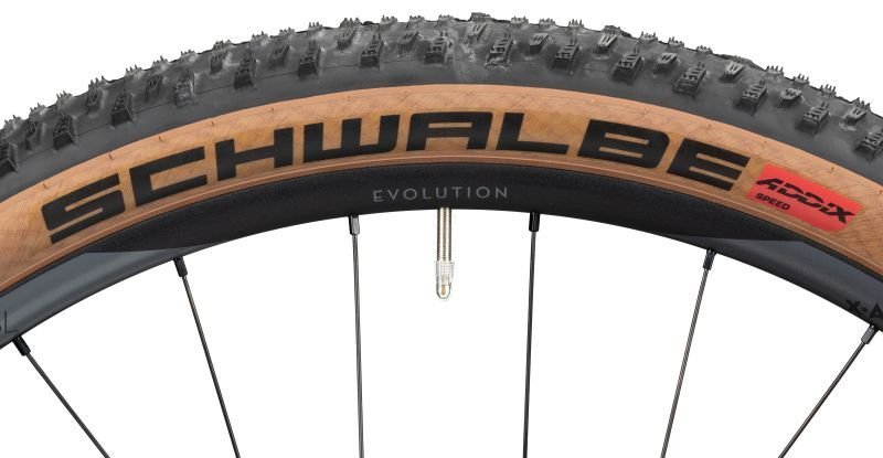 Reifen vorne: Schwalbe Racing Ray, Addix-Speed, Super Race, TLE, transparent skin, 29″ x 2.25″