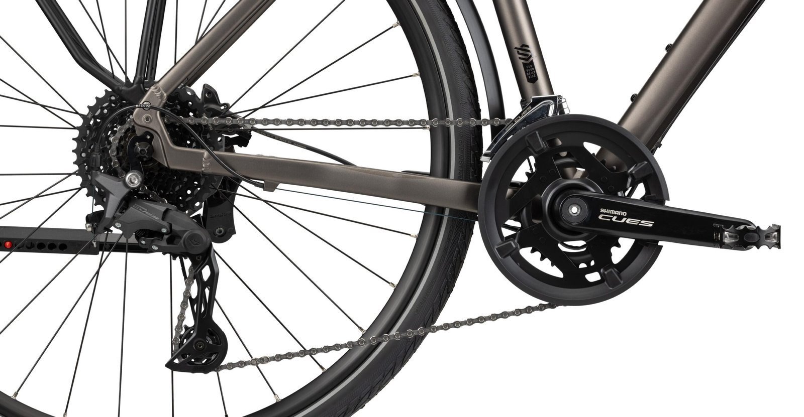 | Kurbel: | Shimano CUES FC-U4010-2, 46/30T, 175mm (Mit Kettenschutz) |