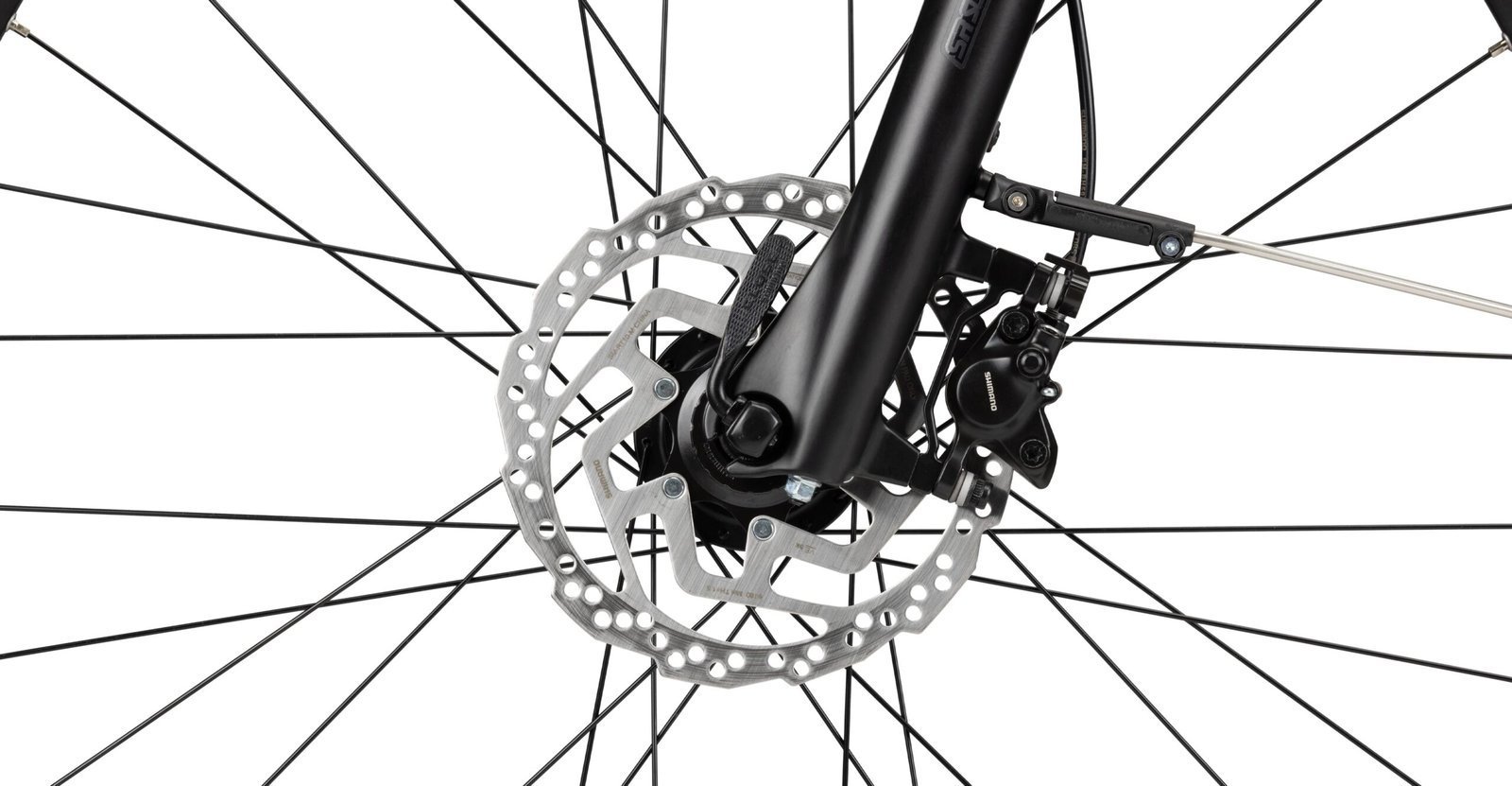 Die moderne Suntour NX1 Federgabel sorgt für spürbaren Komfort, auch bei schlechter Wegbeschaffenheit. Sie kann bei Bedarf auch blockiert werden, um in langen Anstiegen keine Energie zu verschenken. Die neue hochwertige 2×10 Shimano CUES Gruppe verspricht knackige Schaltwechsel und eine hohe Lebensdauer, während die Bandbreite der 11-39 Kassette sicherstellt, dass Du immer den richtigen Gang parat hast. Die fein dosierbare und kraftvolle Shimano BR-MT200 Bremse, in Kombination mit den Schwalbe Road Cruiser Reifen, bietet gute Traktion und Sicherheit bei Bremsmanövern. Der freischwebende Gepäckträger ist nicht nur optisch ein Highlight, sondern überzeugt auch durch Stabilität und kann bei Bedarf mit Gepäcktaschen bestückt werden, um Dich auf Deiner nächsten Tour oder beim Pendeln zu unterstützen. Unser Klassiker wird durch eine hochwertige Lichtanlage und ein ergonomisches Cockpit für zusätzlichen Komfort abgerundet. Das SOLUTION COMFORT 7.0 – unser Bestseller steht bereit und setzt weiterhin Maßstäbe!