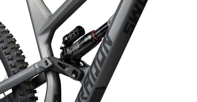 Die Vorgaben bei der Entwicklung für das SWOOP in der Carbon Variante waren klar – frisches Design, moderne Kinematik und neue Dämpferanlenkung. Herausgekommen ist ein leichter und steifer Carbon Hauptrahmen mit einem soliden Aluminium Hinterbau. Da ist kein Stein auf dem alten geblieben. Progressive Geometrie, 29″ Laufräder, Möglichkeit der Geometrieverstellung, 170mm Federweg – hier wurden keine Kompromisse eingegangen! Die Kinematik erlaubt selbst Coil Dämpfer. Für eine hohe Wendigkeit haben wir die Kettenstreben mit 438mm kurz gehalten und trotz des langen Radstands, sowie dem flachen Lenkwinkel sind sogar enge Kurven ein Kinderspiel. Das Highlight bietet der drehbare Steuersatz, welcher den Steuerwinkel um 1.5 Grad verändern kann.